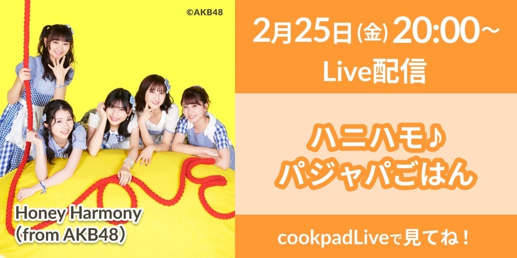 【稲垣・福岡】2/25(金) cookpadLive『ハニハモ♪パジャパごはん』観覧予約スタート