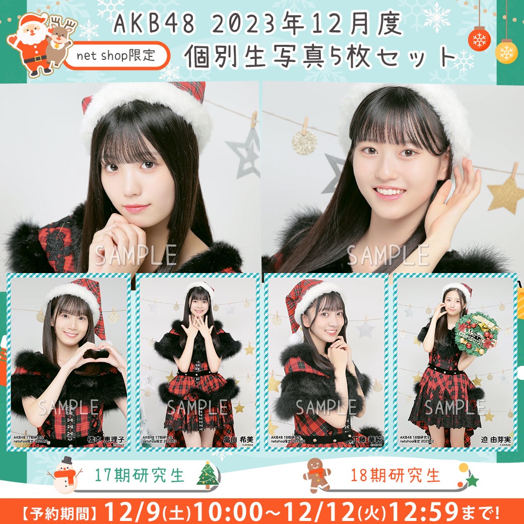 【12/9(土)10時予約開始】AKB48 17期・18期研究生2023年12月度個別生写真