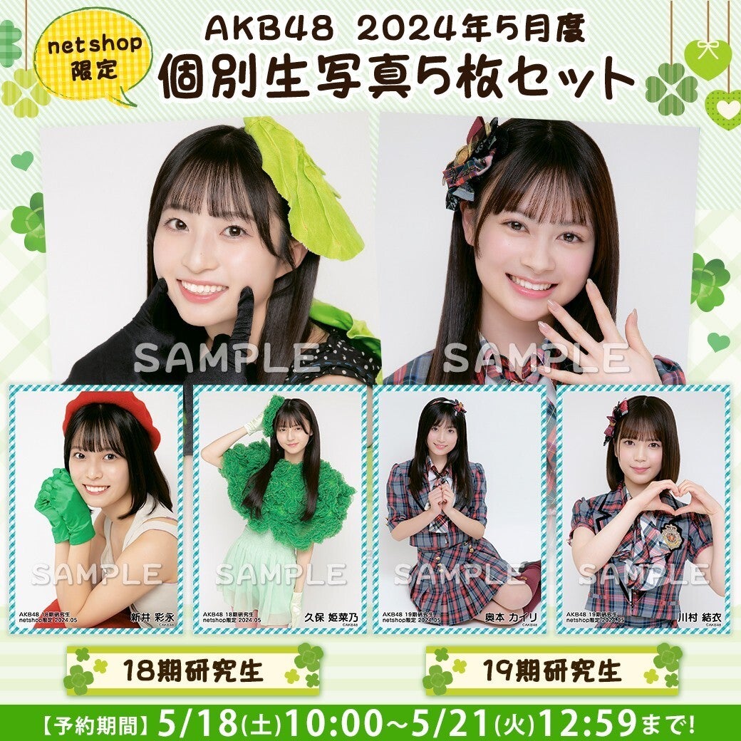 AKB48 19期研究生 2024年5月度 net shop限定個別生写真5枚セット ¥1,200 (税込)