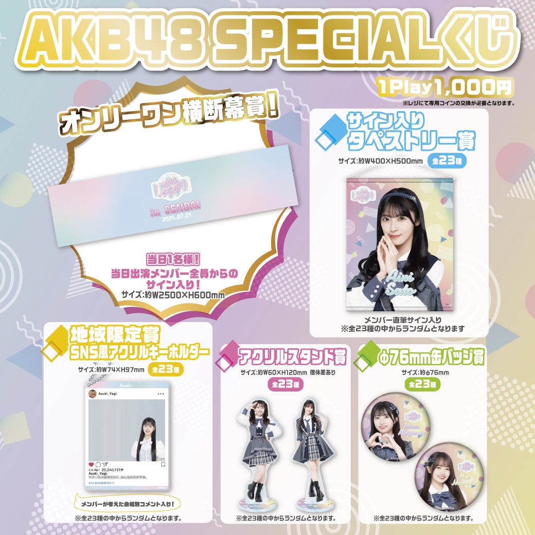 7/21(日) 宮城県/SENDAI GIGSにて開催されます「AKB48 17期生昇格記念LIVE!新メンバー挨拶まわり〜 私たち、AKB48ですin宮城県/SENDAI GIGS」にて豪華賞品が当たるAKB48 SPECIALくじを開催させていただきます!