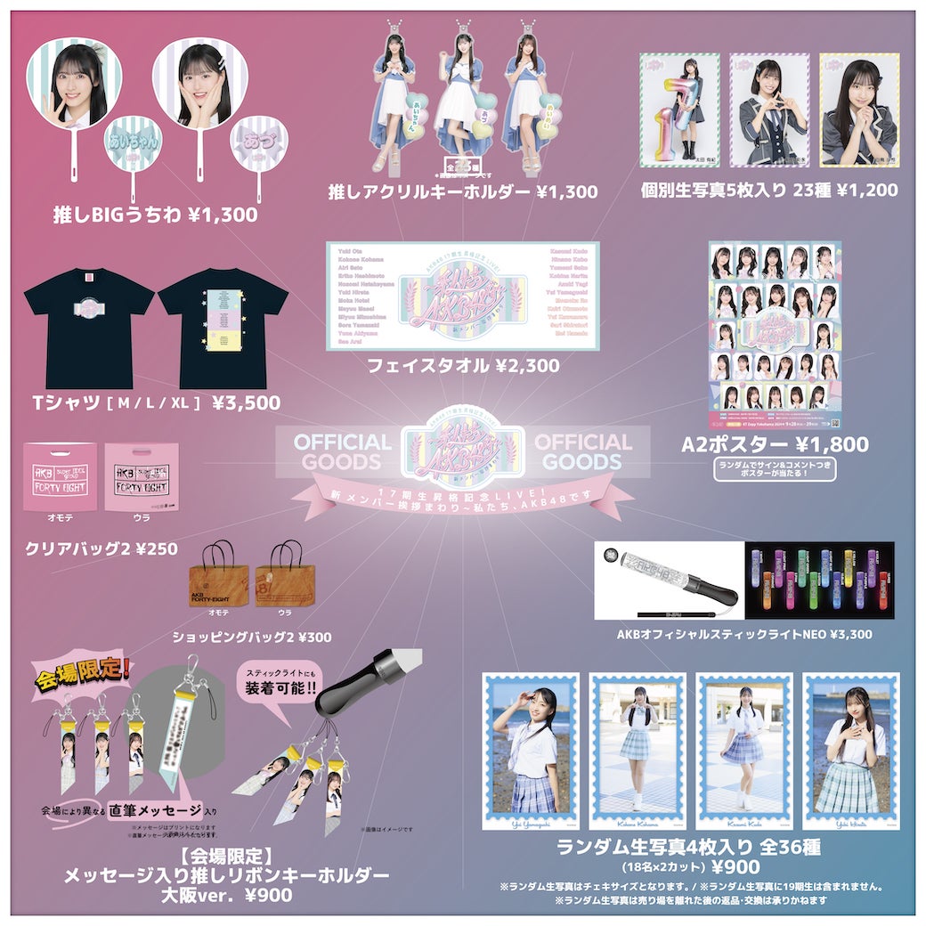 8/3(土) 大阪府/ GORILLA HALL OSAKAにて開催されます「AKB48 17期生昇格記念LIVE!新メンバー挨拶まわり〜 私たち、AKB48です」のグッズ・生写真会場販売をお知らせします!