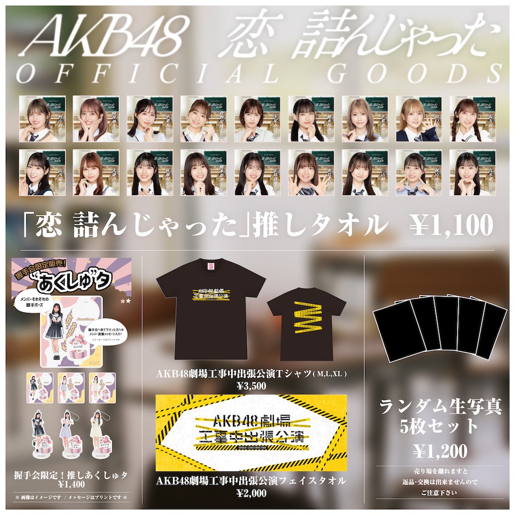 ・AKB48劇場工事中出張公演フェイスタオル 販売価格 各2,000円