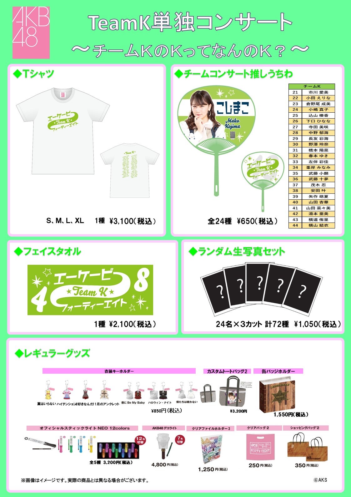 AKB48 チームA/チームK 単独コンサート グッズ/生写真 販売のお知らせ