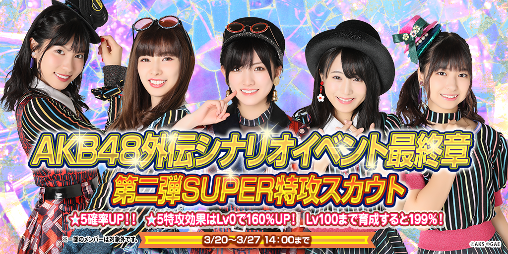 3月20日(水)メンテナンス終了後~3月27日(水)14時まで「AKB48外伝シナリオイベント~最終章~第二弾SUPER特攻スカウト」が開催!
