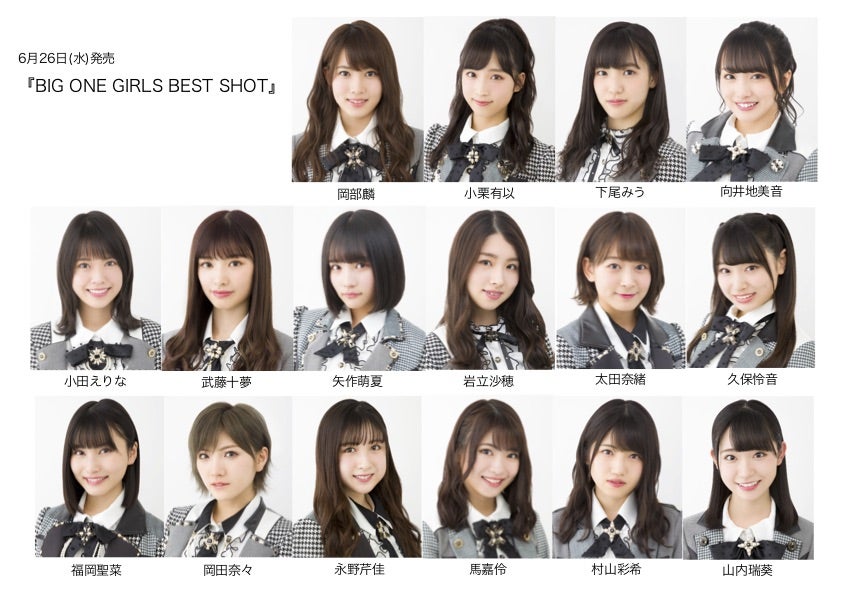 6月26日(水)に発売となる『BIG ONE GIRLS BEST SHOT』に、岡部麟、小栗有以、下尾みう、向井地美音、小田えりな、武藤十夢、矢作萌夏、岩立沙穂、太田奈緒、久保怜音、福岡聖菜、岡田奈々、永野芹佳、馬嘉伶、村山彩希、山内瑞葵が登場。