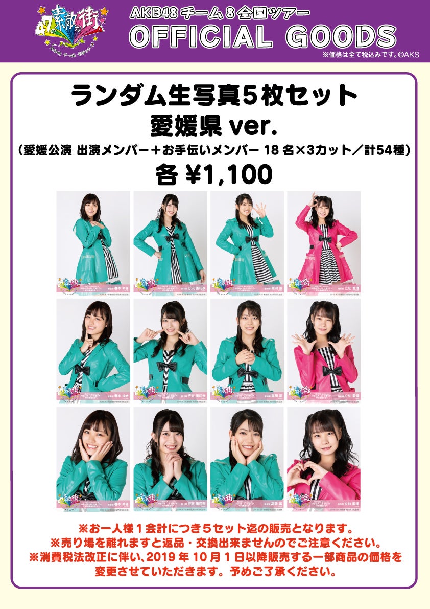 ・全国ツアーランダム生写真5枚セット 愛媛県ver.(愛媛県出演メンバー・お手伝いメンバー計18名3カット計54種) 1,100円