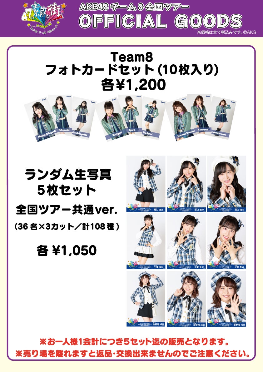 ※ランダム生写真セット2種はそれぞれお1人様1会計につき各5セットまでの購入制限を設けさせていただきます