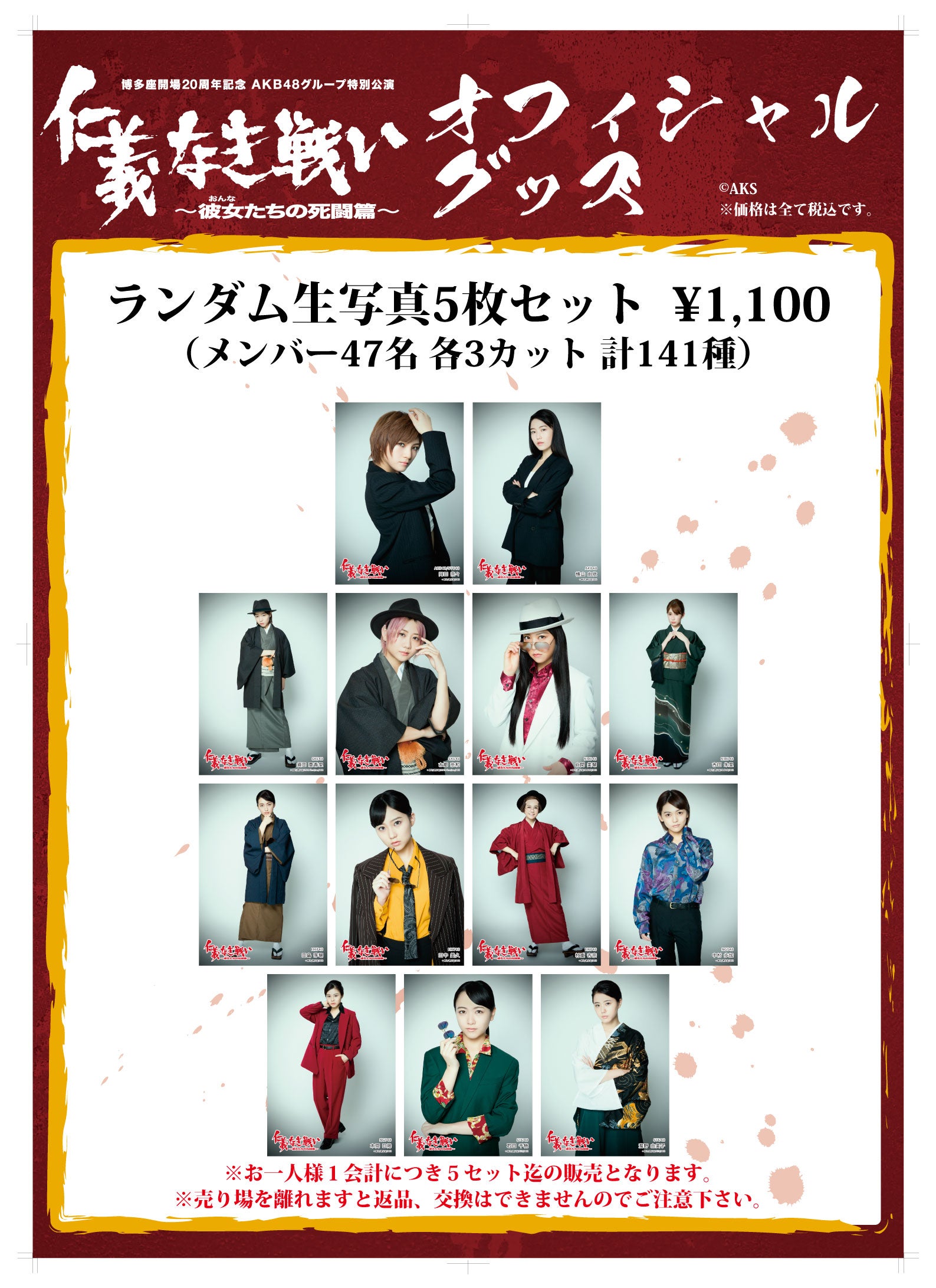 ★仁義なき戦いランダム生写真5枚セット(47名×3カット 全141種) 1,100円