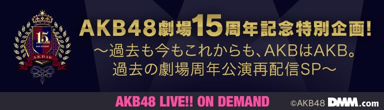 来る12月8日(火)に迎えます『AKB48劇場15周年』を記念して、AKB48 LIVE!! ON DEMANDでは「AKB48劇場15周年記念特別企画! 〜過去も今もこれからも、AKBはAKB。過去の劇場周年公演再配信SP〜」と題し、過去に開催しました『AKB48劇場周年特別記念公演』の模様を再ライブ配信・リバイバル配信させていただきます!