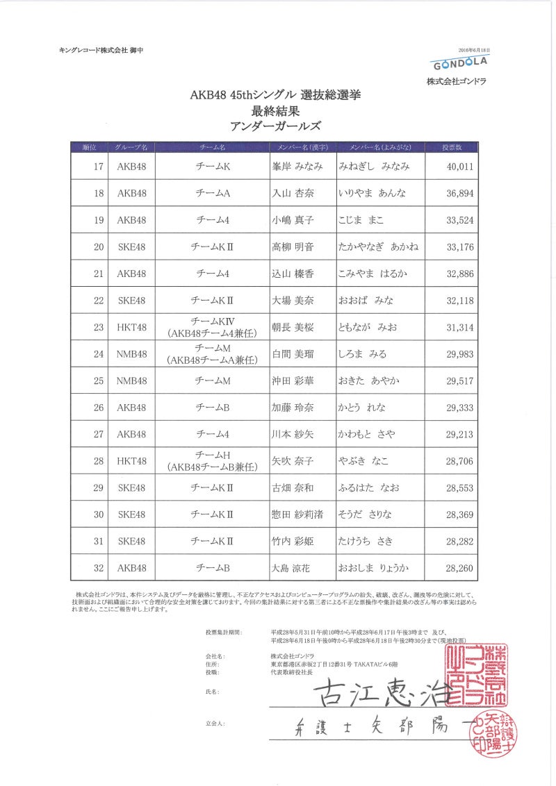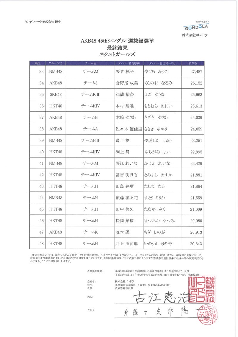 「AKB48 45thシングル 選抜総選挙」開票結果