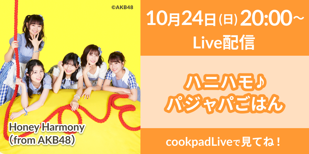 【稲垣香織・長友彩海】10/24(日)生配信 cookpadLive「ハニハモ♪パジャパごはん」