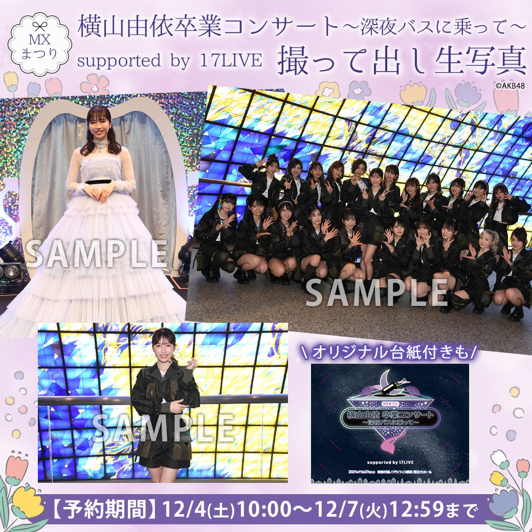 「MXまつり「横山由依卒業コンサート~深夜バスに乗って~」supported by 17LIVE」の記念生写真の発売が決定いたしました!